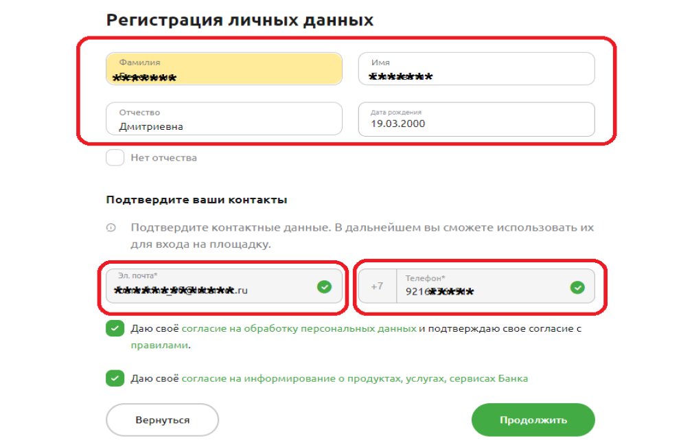 Поставьте галочку на «Согласие на обработку персональных данных» и нажмите на кнопку «Продолжить».
